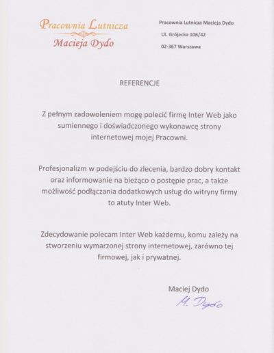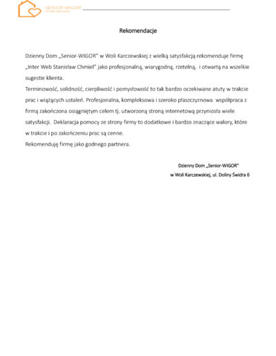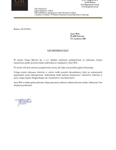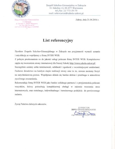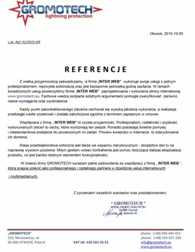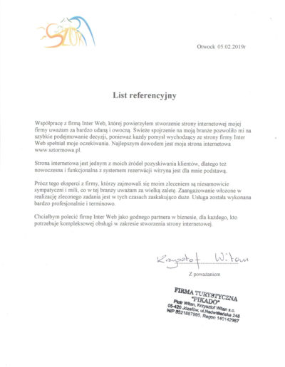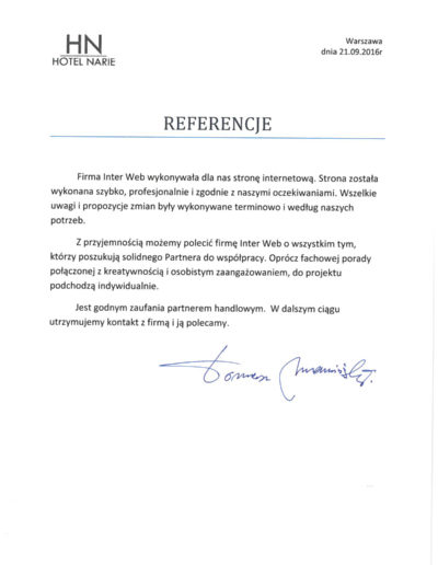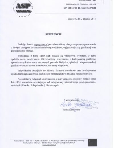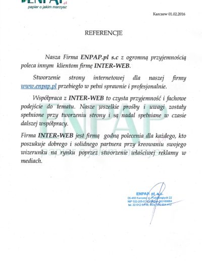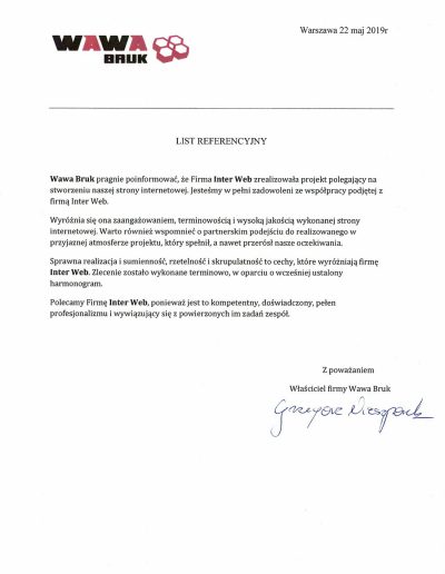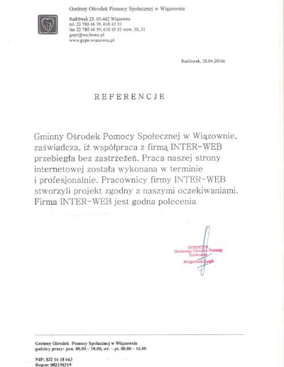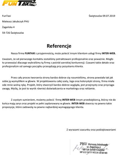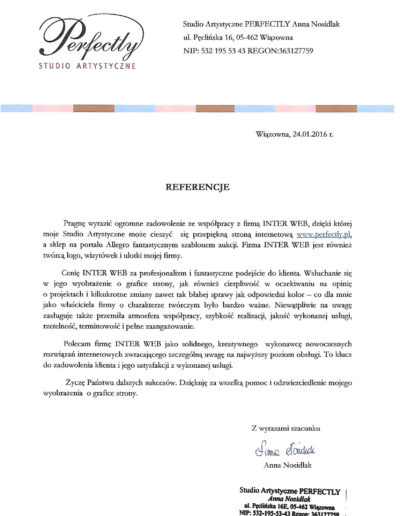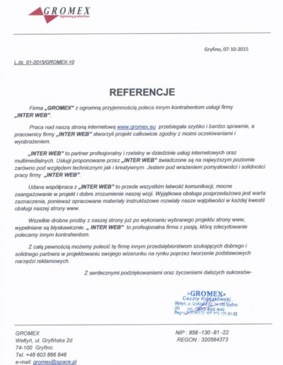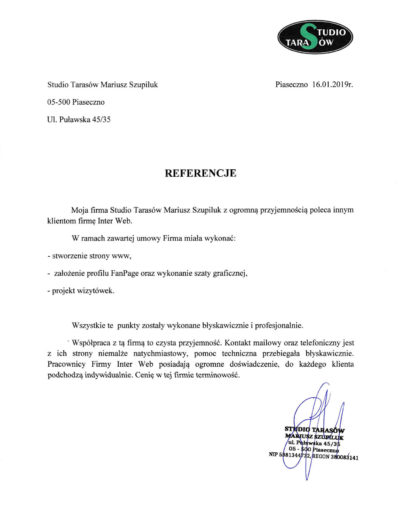 Zachęcamy Państwa do zapoznania się z referencjami, którze otrzymaliśmy od firm z nami współpracujących. Przedstawione poniżej referencje świadczą o zadowoleniu kontrahentów odnośnie jakości tworzonych przez nas stron i oferowanych usług.